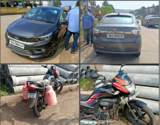 खेड : मुंबई-गोवा महामार्गावरील भरणे नाका येथील श्री काळकाई इंटरप्राईजेस समोर गुरुवारी दुपारी झालेल्या अपघातात एका मोटारसायकलस्वार जखमी झाला आहे. दुपारी सुमारे १२.३० वाजण्याच्या सुमारास मुंबईवरून खेडकडे येणारी MH 47 BB 8247 ही कार आणि त्याच दिशेने जाणारी मोटरसायकल क्रमांक MH 08 BD 3102 यांची पाठीमागून धडक झाली. धडकेचा जोर एवढा होता की मोटरसायकलस्वार रस्त्यावर दूर फेकला गेला.