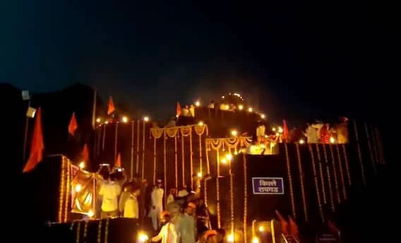 मशाली, पणत्या, आणि फटाक्यांच्या आतिषबाजीनं किल्ले रायगड उजळून निघाला.