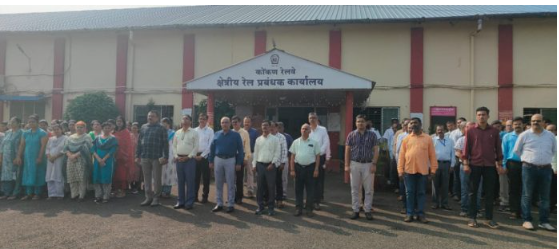 रत्नागिरी : वंदे मातरम् या गीताला आज दिडशे वर्षे पूर्ण होत असल्याने कोकण रेल्वेच्या मार्गावरील सर्व स्थानकात आणि कार्यालयांमध्ये वंदे मातरम् गाण्याचे समूहगान करण्यात आले. थोर दिवंगत कवी आणि साहित्यिक बंकिमचंद्र चटोपाध्याय यांनी रचलेल्या वंदे मातरम् गाण्याला आज दिडशे वर्षे पूर्ण झाली. हे गीत प्रथम त्यांनी लिहिलेल्या आनंदमठ नामक त्यांच्या अत्यंत गाजलेल्या कादंबरीचा भाग होते.