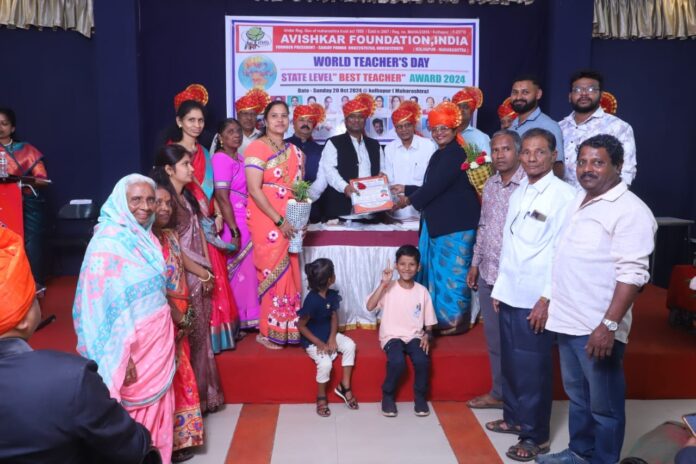 रत्नागिरी : 5 ऑक्टो.जागतिक शिक्षक दिनानिमित्त आविष्कार फाऊंडेशन कोल्हापूर द्वारे 20 ऑक्टोबर 2024 रोजी राजर्षी शाहु महाराज स्मारक भवन येथे आदर्श शिक्षक पुरस्कार प्रदान कार्यक्रम आयोजित करण्यात आला होता.
