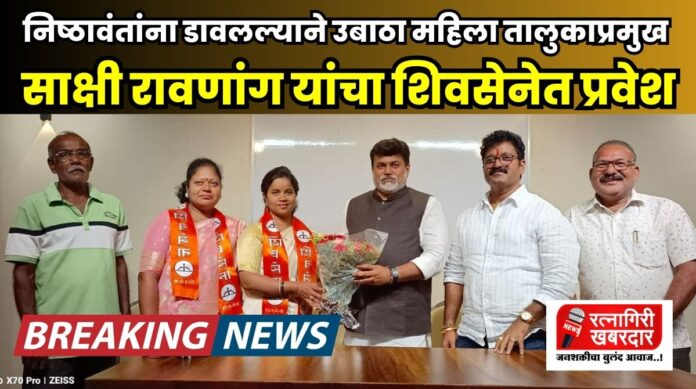 रत्नागिरी : ठाकरेंच्या शिवसेनेकडून रत्नागिरीच्या विधानसभा उमेदवाराची घोषणा होताच वातावरण ढवळून निघाले आहे. बीजेपीचे बाळ माने यांनी मातोश्रीवर जात ठाकरे गटात प्रवेश करताच त्यांना उमेदवारी घोषित करण्यात आली आहे. सर्व शिवसैनिकांनी उदय बने अथवा राजू महाडिक या दोघांपैकी कुणीही उमेदवार पक्षाने द्यावा अशी मागणी केली होती. बाळ माने यांचे नाव चर्चेत आल्यावर देखील निष्ठावंतालाच उमेदवारी मिळाली पाहिजे अशी भूमिका देखील अनेकांनी घेतली होती. मात्र त्या सर्वांचा भ्रमनिरास झाला. काल बाळ माने यांची उमेदवारी जाहीर होताच आता निष्ठावंतांना डावलल्याचे कारण देत उबाठा च्या महिला तालुकाप्रमुख साक्षी रावणांग यांनी एकनाथ शिंदे आणि उदय सामंत यांच्या नेतृत्वावर विश्वास ठेवत आपल्या कार्यकर्त्यांसह शिवसेनेत प्रवेश केला आहे.
