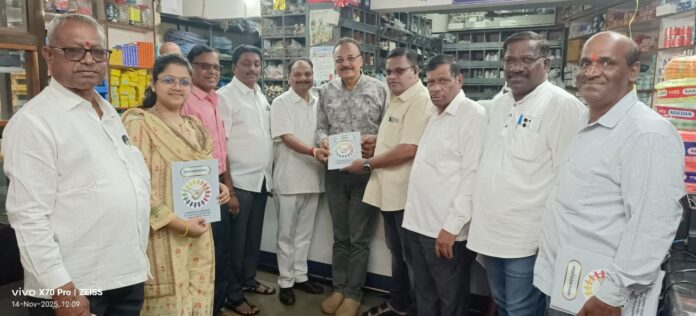 बाजारपेठेत व्यापाऱ्यांना पुस्तिका वितरण