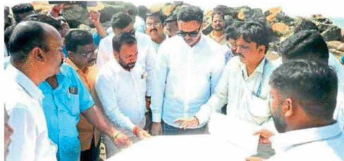 हर्णे बंदर येथे बांधण्यात येत असलेल्या नव्या जेटीच्या कामाची त्यांनी आज प्रत्यक्ष पाहणी करून चालू असलेल्या कामाचा सविस्तर आढावा घेतला. या वेळी संबंधित विभागाच्या अधिकाऱ्यांना त्यांनी हे काम जलदगतीने, सुरक्षित आणि नियोजनबद्ध पद्धतीने पूर्ण करणे ही संबंधित विभागांची जबाबदारी आहे, असे सांगून कामाची गती वाढवण्याचे तसेच नियोजनबद्ध पद्धतीने गुणवत्तापूर्ण काम करण्याचे स्पष्ट निर्देश दिले.
