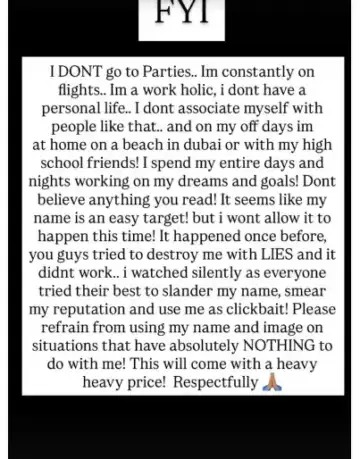 आपलं नाव जाणूनबुजून चुकीच्या बातम्यांमध्ये ओढलं जात आहे, असा आरोप तिने केला. पुढे तिनं लिहलं, “तुम्ही जे काही वाचता त्यावर अजिबात विश्वास ठेवू नका. जाणूनबुजून मला टार्गेट केलं जात आहे. पण यावेळी मी ते अजिबात सहन करणार नाही. हे आधी एकदा घडलं होतं, तुम्ही लोकांनी खोटं बोलून मला संपवण्याचा प्रयत्न केला होता. आणि मी ते शांतपणे पाहत होते. जेव्हा प्रत्येक जण माझं नाव बदनाम करण्याचा, माझी प्रतिष्ठा खराब करण्याचा आणि मला ‘क्लिकबेट’ म्हणून वापरण्याचा प्रयत्न करत होता. माझ्याशी काहीही संबंध नसलेल्या परिस्थितीत माझं नाव आणि प्रतिष्ठा वापरण्यापासून कृपया दूर रहा. याची मोठी किंमत मोजावी लागेल”, असा थेट इशारा तिने दिला आहे.
