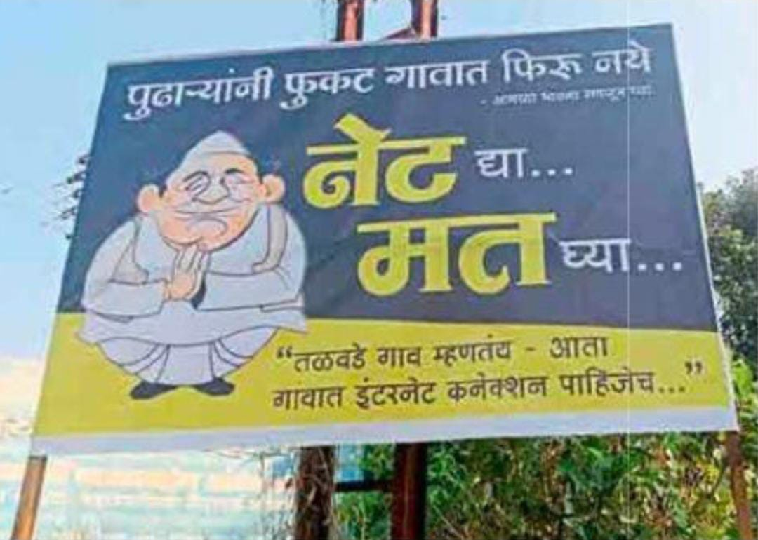 बॅनरवरील मजकूर ‘पुढाऱ्यांनी फुकट गावात फिरू नये, आमच्या भावना समजून घ्या… नेट द्या, मत घ्या, ‘असा स्पष्ट संदेश देतो. या खाली तळवडे गाव म्हणतंय, आता गावात इंटरनेट कनेक्शन पाहिजेच, असेही म्हटले आहे. सध्या निवडणुकांचा काळ सुरू असल्याने अनेक राजकीय पुढारी गावभेटी घेत आहेत. गावातील तरुण, विद्यार्थी, शेतकरी आणि नोकरदार यांना इंटरनेटच्या अभावामुळे दररोज समस्या भोगाव्या लागतात. काही अत्यावश्यक माहिती पोहोचवणे खूप अडचणी येत आहेत.