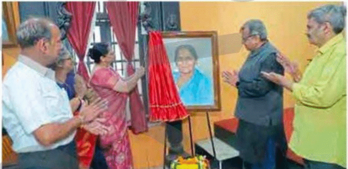 चिपळूण : येथील लोकमान्य टिळक स्मारक वाचन मंदिराच्या कलादालनाकरिता राष्ट्राच्या परमवैभवाचे ध्येय डोळ्यांसमोर ठेवून जीवनभर कार्यरत राहिलेल्या राष्ट्रसेविका समितीच्या द्वितीय संचालिका सरस्वती (ताई) विनायकराव आपटे यांच्या तैलचित्राचे अनावरण वाचनालयाच्या बाळशास्त्री जांभेकर सभागृहात झाले.