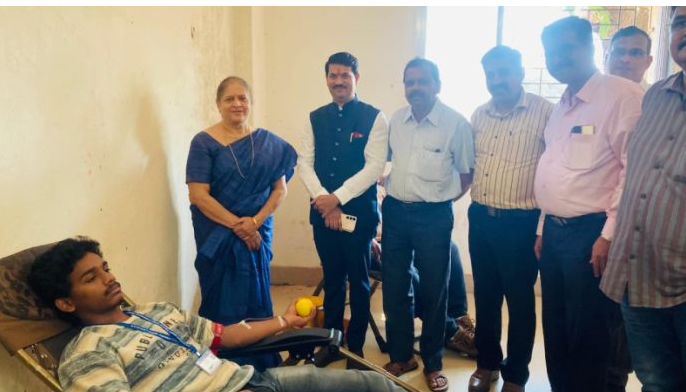 रत्नागिरी : अभ्यंकर कुलकर्णी कनिष्ठ महाविद्यालयाच्या सुवर्ण महोत्सवी वर्षानिमित्ताने आयोजित रक्तदान शिबिराचे उद्घाटन आज पदवीधर शिक्षक आमदार मा. श्री. ज्ञानेश्वर म्हात्रे यांच्या शुभहस्ते संपन्न झाले. याप्रसंगी रत्नागिरी एज्युकेशन सोसायटीच्या कार्याध्यक्षा श्रीम. शिल्पाताई पटवर्धन, शालेय समिती अध्यक्ष श्री. आनंदराव देसाई, सहकार्यवाह प्रा. श्रीकांत दुदगीकर, प्राचार्य डॉ. मकरंद साखळकर, नियामक मंडळ सदस्य श्री. मनोज पाटणकर व डॉ. संजय केतकर, लाइफ मेंबर बोर्ड अध्यक्ष प्रा. महेश नाईक, वैभवी लक्ष्मी ब्लड बँक समन्वयक श्री. अजय भिडे, उपप्राचार्य प्रा. सुनील गोसावी, पर्यवेक्षक प्रा. विद्याधर केळकर, श्रीमान भागोजीशेठ विधी महाविद्यालयाचे प्राचार्य डॉ. आशिष बर्वे, लाइफ मेंबर बोर्ड बोर्ड सदस्य श्री. राजेश आयरे, सुवर्ण महोत्सव समन्वयक प्रा. वैभव कानिटकर, विज्ञान शाखा प्रमुख प्रा. दिलीप शिंगाडे इत्यादी मान्यवर यांच्या प्रमुख उपस्थितीत संपन्न झाले.