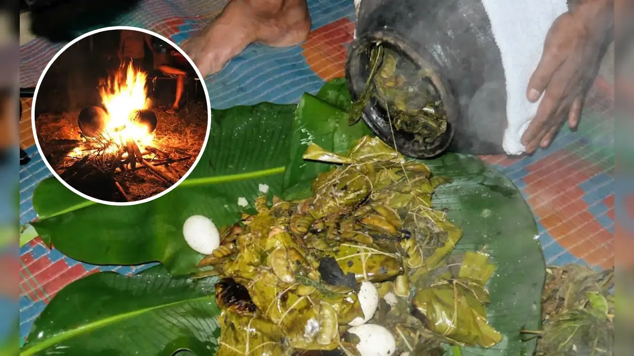 घरातली मडकी बाहेर काढली जातात, केळीची हिरवीगार पानं धुऊन मडक्याच्या आत लावली जातात. तळाशी भांबुर्डी किंवा भामरुटाचा पाला पसरवून जणू निसर्गाचंच अंथरूण तयार केलं जातं. त्यावर एकेक थर घालत ही कोकणी जादू सुरू होते. वालाच्या शेंगा, पावटे, बटाटे, भाज्या, ओव्यासारखा अंगावर येणारा मसाला, हळदीचा सुवास आणि मांसाहार करणाऱ्यांसाठी मासे किंवा चिकनचे तुकडे. हे सगळं थरावर थर रचून मडक्याचं तोंड पुन्हा भांबुर्डीच्या पाल्यानं घट्ट बंद केलं जातं.