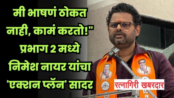 रत्नागिरी: “मला भाषणाची सवय नाही, माझे मित्र म्हणतात हा बोलायला चुकेल, पण मी गॅरंटी देतो की हा निमेश नायर काम करायला कधीच चुकणार नाही.” अशा शब्दांत रत्नागिरी नगरपरिषदेच्या प्रभाग क्रमांक २ मधील महायुतीचे उमेदवार निमेश नायर यांनी मतदारांशी संवाद साधला. निमित्त होते रत्नागिरी नगरपालिकेच्या निवडणुकीच्या पार्श्वभूमीवर आयोजित महायुतीच्या प्रचार सभेचे.