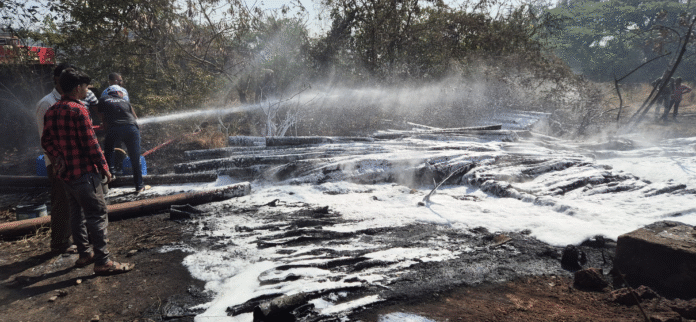 रत्नागिरी (प्रतिनिधी): शहरातील नाचणे परिसरात असलेल्या महाराष्ट्र जीवन प्राधिकरणाच्या (MJP) गोडावूनला रविवारी सकाळी भीषण आग लागल्याची घटना घडली. या आगीने पाहता पाहता रौद्र रूप धारण केले आणि पाणीपुरवठा योजनांसाठी साठवून ठेवलेले लाखो रुपयांचे एचडीपी (HDPE) पाईप्स जळून खाक झाले. या आगीमुळे विभागाचे मोठे आर्थिक नुकसान झाले आहे.