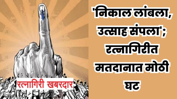 रत्नागिरी: रत्नागिरी नगरपालिका निवडणुकीसाठी आज (दि. २) पार पडलेल्या मतदानामध्ये मतदारांचा कमालीचा निरुत्साह पाहायला मिळाला. अटीतटीच्या मानल्या जाणाऱ्या या निवडणुकीत दुपारनंतर मतदानाचा टक्का घसरला आणि सायंकाळी ५.३० वाजेपर्यंत सरासरी ५५.०९ टक्के इतक्या नीचांकी मतदानाची नोंद झाली. मतदानाची ही घसरलेली टक्केवारी आणि निकालासाठी असलेली प्रदीर्घ प्रतीक्षा यामुळे उमेदवारांच्या छातीत धडकी भरली आहे.