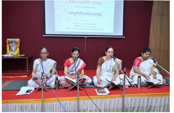रविवारी सायंकाळी माधवराव मुळ्ये भवन येथे गीताजयंतीनिमित्त झालेल्या कार्यक्रमामध्ये त्यांचे व्याख्यान झाले. या प्रसंगी सुमारे २०० गीताप्रेमी उपस्थित होते. या कार्यक्रमाचा प्रारंभ भारतमातेच्या व श्रीकृष्णाच्या प्रतिमापूजनाने आणि गीता पूजनाने झाला. संस्कृतभारतीचे विभाग संयोजक श्री मनोहर काजरेकर आणि ज्येष्ठ संस्कृत शिक्षिका व गीताव्रती सौ वंदना घैसास यांच्या हस्ते पूजन झाले. त्यानंतर संपूर्ण १८ अध्यायांचे पारायण सौ. योजना घाणेकर, सौ. किशोरी मोघे, सौ. अमृता आपटे आणि चिन्मयी सरपोतदार यांच्या नेतृत्वाखाली झाले. श्री. किशोर पावसकर आणि श्री. मोहन भिडे यांच्या हस्ते झालेल्या गीता आरतीने पारायणाची सांगता झाली.
