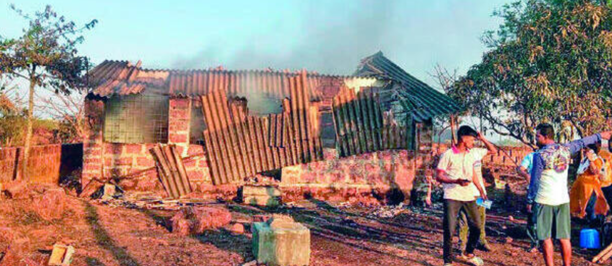 गेले दोन-तीन दिवस थंडीची लाट असल्याने वाऱ्याचे प्रमाण मोठ्या प्रमाणात आहे. दरवर्षी या कातळ परिसरात प्रमाण मोठ्या प्रमाणात गवत वाढत असल्यामुळे वणव्याच्या घटना घडतात. मंगळवारी सकाळीही या परिसरामध्ये वारा असल्याने कातळातील गवत वणव्यामुळे आगीच्या भक्ष्यस्थानी पडले. याच भागात रसाळ यांचे गोडाऊन असल्यामुळे ते वणव्यात सापडून खाक झाले.