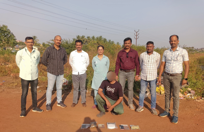 स्थानिक गुन्हे अन्वेषण शाखेचे पोलीस निरीक्षक श्री. नितीन ढेरे यांच्या मार्गदर्शनाखाली पथक ८ डिसेंबर रोजी रत्नागिरी शहरात गस्त घालत होते. दुपारी २:३० वाजण्याच्या सुमारास कोकण नगर येथील कब्रस्थानच्या बाजूला असलेल्या मोकळ्या जागेत एक व्यक्ती हातात कॅरीबॅग घेऊन संशयास्पदरित्या उभी असल्याचे पथकाला दिसले.