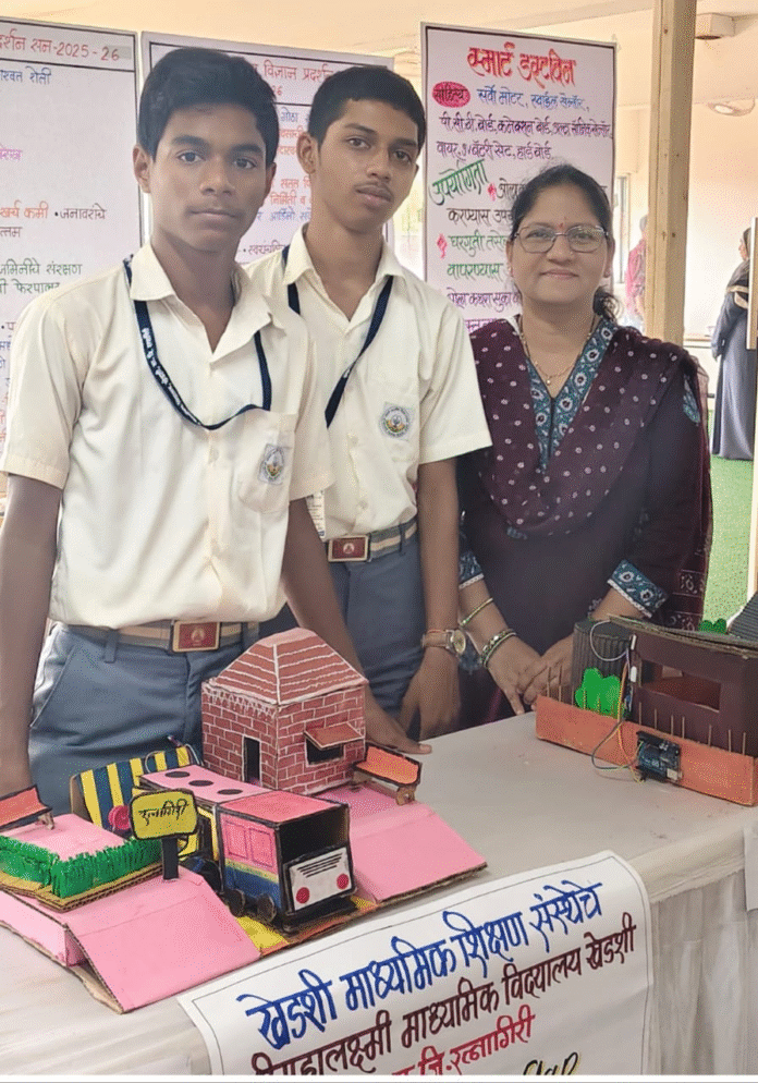 रत्नागिरी : रत्नागिरी तालुक्यातील कसोप येथे पार पडलेल्या ५३ व्या तालुकास्तरीय विज्ञान प्रदर्शनात (Taluka Level Science Exhibition) श्री महालक्ष्मी माध्यमिक विद्यालयाच्या विद्यार्थ्यांनी घवघवीत यश संपादन केले आहे. विद्यार्थ्यांच्या कल्पकतेतून साकारलेल्या ‘रेल्वे सेफ्टी फ्लॅप’ (Railway Safety Flap) या उपकरणाने सर्वांचे लक्ष वेधून घेत माध्यमिक गटातून द्वितीय क्रमांक पटकावला आहे.