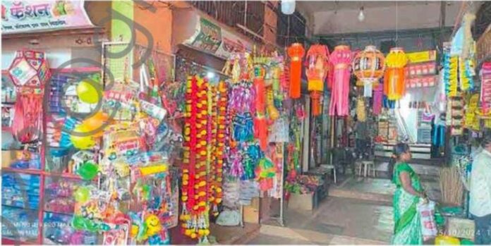 तसेच नजर आकाशाकडे लागली आहे. मंडणगड शहर, देव्हारे, कुंवळे, म्हाप्रळ या बाजारपेठेत ग्रामीण भागातील शेतकरी, नागरिक गर्दी करत असतात; मात्र ते अजूनही शेतीकामात व्यस्त असल्याने बाजारपेठेत तुरळक गर्दी दिसून येते. दुकानातून विविध प्रकारांचे रंगीबेरंगी आकाशकंदील, पणत्या, रांगोळी, फटाके विक्रीला ठेवण्यात आले आहेत. कपडे, रंगीबेरंगी रांगोळ्या, आकर्षक पणत्या, दिवे, तोरण, लटकते तोरण, पर्स, बँगा, रांगोळीचे छाप, चप्पल अशा अनेकविध साहित्याने बाणकोट रोड, नगरपंचायत संकुल, भिंगळोली रोडवरील दुकाने सजवण्यात आली आहेत.