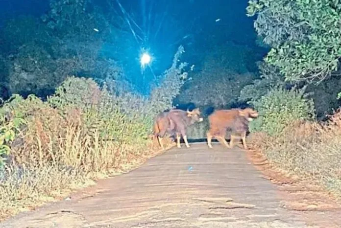 हा प्रकार रात्रीच्या सुमारास घडला.मिरजोळे येथील रहिवासी शनिवारी रात्री दहा वाजण्याच्या सुमारास घरी जात होते. त्याचवेळी रस्त्याच्या मधोमध दोन गवे आढळले. सुरुवातीला पाळीव जनावरे असतील असे वाटले; पण चारचाकी वाहनाच्या प्रकाशात सफेद पाय आणि तपकिरी रंग पाहिल्यावर ते गवे असल्याचे लक्षात आहे.