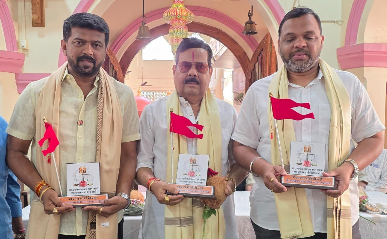 नुकत्याच पार पडलेल्या रत्नागिरी नगरपालिकेच्या निवडणुकीत वैश्य समाजाने (Vaishya Samaj) आपली एकजूट दाखवून देत घवघवीत यश संपादन केले आहे. समाजाचे प्रतिनिधित्व करणाऱ्या तीन शिलेदारांनी नगरसेवक पदी निवडून येत समाजाची मान उंचावली आहे. या नवनिर्वाचित नगरसेवकांचा गौरव करण्यासाठी श्री राधाकृष्ण मंदिर वैश्य संस्था, वैश्य युवा आणि राधाकृष्ण महिला मंडळ यांच्या वतीने राधाकृष्ण मंदिरात एका भव्य सत्कार समारंभाचे आयोजन करण्यात आले होते.