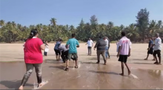 गुहागर : शहरातील वरचापाट परिसरातील समुद्रकिनाऱ्यावर भरदुपारी दोन कुटुंबांतील ४ जण पाण्यात उतरले होते. त्यापैकी ४२ वर्षीय अमूल मुथ्था यांचा समुद्राच्या पाण्यात बुडून मृत्यू झाला, तर दोन मुले आणि एका महिलेला गुहागर नगरपंचायतीचे जीवरक्षक आणि श्री समर्थ वॉटर स्पोर्टस्च्या दोन कर्मचाऱ्यांना वाचविण्यात यश आले आहे. ही घटना दि. २७ डिसेंबरला दुपारी ११.४५ ते १२.१५ च्या दरम्यान घडली.