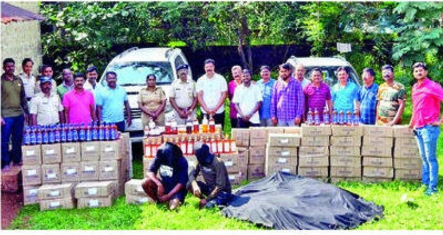 विजय प्रभाकर तेली (वय ३२, रा. स्टेट बैंक कॉलनी, कळंबट कणकवली, सिंधुदुर्ग) आणि अक्षय चंद्रशेखर गाडगावकर (२१, रा. रामगड देऊळवाडी, ता. मालवण, सिंधुदुर्ग) अशी ताब्यात घेण्यात आलेल्या दोन संशयितांची नावे आहेत. त्यांच्यावर महाराष्ट्र दारूबंदी कायदा कलम ६५ (अ), (ई),८०, ८१८३ अन्वये गुन्हा दाखल करण्यात आला आहे. यातील विजय तेली हा आपल्या ताब्यातील ५० लाख किमतीच्या टोयोटा फॉर्च्यूनर गाडी (एमएच ०१-बीसी-१६१६) मधून ९ लाख ७४ हजार ८८० रुपयांचा गोवा बनावटीचा दारु साठा तर अक्षय गाडीघावकर हा आपल्या ताब्यातील २० लाख किमतीच्या हुंडाई क्रेटा गाडी (एमएच-०७-एबी- १५७३) मधून ८ लाख १८ हजार ८८० रुपयांचा दारु साठ्याची बेकायदेशिरपणे वाहतूक करताना ही कारवाई करण्यात आली. या प्रकरणी पुढील तपास ग्रामीण पोलिस ठाण्याच्या सहाय्यक पोलिस निरीक्षक तेजस्वी पाटील या करत आहेत.