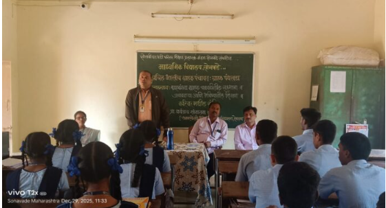 प्रा. धनंजय दळवी यांनी “भविष्यातील शिक्षण व करियरमधील संधी” याबाबतचे मार्गदर्शन करताना नवीन राष्ट्रीय शैक्षणिक धोरणामध्ये शिक्षण पद्धतीत झालेले बदल व त्याला सामोरे जाताना आपली कौशल्य व आवड कशाप्रकारे जपली पाहिजे हे विविध उदाहरणांनी स्पष्ट केले. वाणिज्य, कला व किमान कौशल्यावर आधारित कोर्समधील शिक्षणात असणाऱ्या भविष्यातील करियर संधी याबाबत विवेचन केले. प्रत्येक विद्यार्थ्यांनी आपली आवड, क्षमता व अंगभूत कौशल्याचा विचार करून दहावीनंतरचे शिक्षण घेऊन आपल्या भवितव्याला आकार देण्याचे आवाहन करून, आपल्या मार्गदर्शनाला विराम दिला. मुख्याध्यापक श्री. बंडगर यांनी आभार व्यक्त केले. या मार्गदर्शन कार्यक्रमाला बहुसंख्य विद्यार्थ्यांसह शिक्षक अमृत मेंगाल, अभिजीत कदम, सायली बनकर, विनायक मोहिते, प्रकाश कांबळे यांची उपस्थिती होती. कार्यक्रमाच्या यशस्वी आयोजनासाठी लिपिक लक्ष्मीकांत गवाणकर, सहाय्यक अजित पुरोहित, गजानन निमजे व विशाल जाधव यांनी मेहनत घेतली.