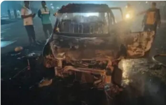 चिपळूण : मुंबई–गोवा राष्ट्रीय महामार्गावर खेंड–चिपळूण दरम्यानच्या एक्सेल फाटा परिसरात आज पहाटे एक भीषण प्रसंग घडला. गोव्याच्या दिशेने जाणारी मारुती एर्टिगा कार अचानक नियंत्रणाबाहेर जाऊन डिव्हायडरवर आदळली आणि काही क्षणांतच वाहनाला भीषण आग लागली. पहाटे सुमारे पाचच्या सुमारास घडलेल्या या घटनेने परिसरात एकच खळबळ उडाली.