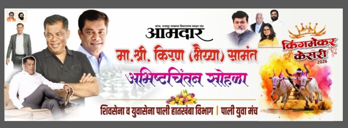 वार्ताहर पाली : पालीचे सुपुत्र आ.किरण सामंत यांच्या वाढदिवसानिमित्त पालीत भव्य दिव्य राज्यस्तरीय किंगमेकर केसरी बैलगाडी शर्यतीचे आयोजन देवतळे येथे करण्यात आले आहे. या स्पर्धा बुधवार दि.७ जानेवारी २०२६ रोजी सकाळी ११.०० वाजता होणार आहेत. ही स्पर्धा चार गटांमध्ये होणार असून प्रवेश फी घाटी गट १०००/-रूपये. गावठी गट ५००/-रूपये अशी आहे.