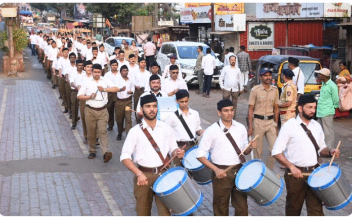 रत्नागिरी : राष्ट्रीय स्वयंसेवक संघ, रत्नागिरी नगर यांच्या वतीने (रविवार) शहरात शिस्तबद्ध व उत्साहपूर्ण नगर संचलन करण्यात आले. शहरातील विविध वस्त्यांमधून स्वयंसेवकांनी एकत्र येत संघशक्ती, शिस्त आणि सामाजिक ऐक्याचे दर्शन घडविले. संध्याकाळच्या वेळेत निघालेल्या या संचलनामुळे शहरात शिस्तीचे व राष्ट्रभक्तीचे वातावरण निर्माण झाले होते.