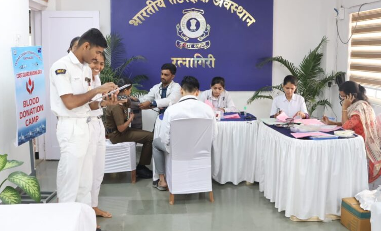 रत्नागिरी : भारतीय तटरक्षक दलाच्या स्थापनेला ५० वर्षे पूर्ण होत असल्याच्या निमित्ताने, भारतीय तटरक्षक अवस्थान रत्नागिरीच्या वतीने आज विशेष रक्तदान शिबिराचे आयोजन करण्यात आले होते. कोकण किनारपट्टीच्या, विशेषतः रत्नागिरी आणि सिंधुदुर्ग जिल्ह्यांच्या सागरी संरक्षणाची जबाबदारी सांभाळणाऱ्या या कार्यालयाने सुवर्ण महोत्सवी वर्षी सामाजिक बांधिलकी जपत हा उपक्रम राबवला.