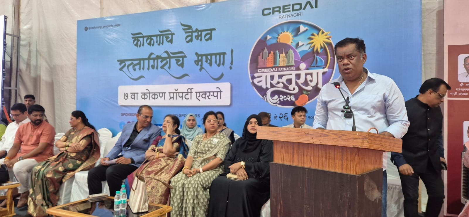 क्रेडाई आयोजित वास्तूरंग प्रदर्शनाचे उद्घाटन शुक्रवारी आमदार किरण सामंत यांच्या हस्ते करण्यात आले. यावेळी त्यांच्या सोबत क्रेडाई अध्यक्ष महेश गुंदेचा, नगराध्यक्ष शिल्पा सुर्वे, राजापूरच्या नगराध्यक्ष हुस्नबानू खलीपे, भाजपच्या महिला जिल्हाध्यक्ष वर्षा ढेकणे, सहाय्यक नगररचनाकार विराज बोडस, नगरसेवक सौरभ मलुष्टे, नगरसेविका पूजा पवार, नगरसेविका रूखसार खान, नगरसेविका फौजिया खान आदी उपस्थित होते.