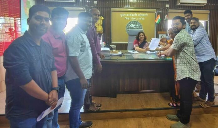 रत्नागिरी : “एकच मिशन, शासन सेवेत समायोजन” या प्रमुख मागणीसाठी रत्नागिरी जिल्ह्यातील महात्मा गांधी राष्ट्रीय ग्रामीण रोजगार हमी योजनेतील (मनरेगा) कर्मचाऱ्यांनी आजपासून आंदोलनाचे हत्यार उपसले आहे. आपल्या विविध प्रलंबित मागण्यांकडे शासनाचे लक्ष वेधण्यासाठी जिल्ह्यातील कर्मचाऱ्यांनी आज मुख्य कार्यकारी अधिकारी, जिल्हा परिषद रत्नागिरी यांना सविस्तर निवेदन सादर केले.