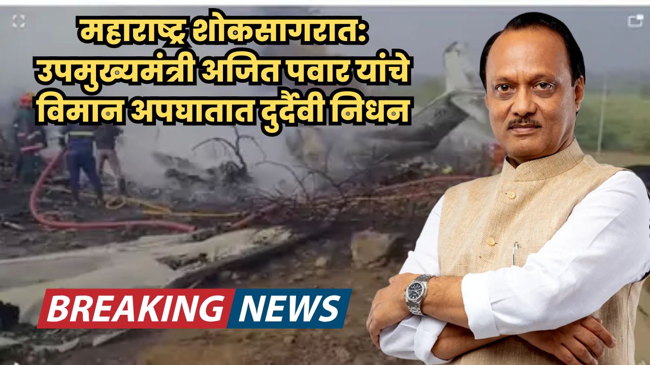 बारामती (प्रतिनिधी): महाराष्ट्राच्या राजकीय वर्तुळातून एक अत्यंत धक्कादायक आणि दुःखद बातमी समोर आली आहे. राज्याचे उपमुख्यमंत्री आणि राष्ट्रवादी काँग्रेसचे नेते अजित पवार यांचे बारामती येथे झालेल्या एका भीषण विमान अपघातात निधन झाले आहे. या अपघातात अजित पवार यांच्यासह विमानातील एकूण ६ जणांचा मृत्यू झाल्याची प्राथमिक माहिती मिळत असून, यामुळे संपूर्ण राज्य शोकसागरात बुडाले आहे.
