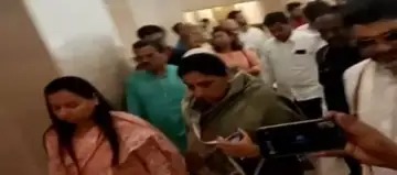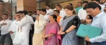 यावेळी राष्ट्रवादीचे सर्व आमदार पायऱ्यांवर उभे राहिल्याचे पाहायला मिळाले.
