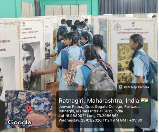 रत्नागिरी : महाराष्ट्र शासनाचे पुराभिलेख संचालनालय आणि गोगटे जोगळेकर महाविद्यालय यांच्या संयुक्त विद्यमाने २८ व २९ जानेवारी २०२६ रोजी एका विशेष प्रदर्शनाचे आयोजन करण्यात आले होते. राष्ट्रपिता महात्मा गांधी व माजी पंतप्रधान लालबहादूर शास्त्री यांच्या जीवनकार्याशी संबंधित दुर्मिळ पुराभिलेख, शासकीय दस्तऐवज आणि ऐतिहासिक छायाचित्रे या प्रदर्शनात मांडण्यात आली होती. प्रदर्शनाच्या पहिल्या दिवशी महाराष्ट्र राज्याचे उपमुख्यमंत्री मा. अजित पवार यांच्या निधनाची वार्ता समजताच नियोजित उद्घाटन सोहळा रद्द करण्यात आला. यावेळी महाविद्यालयाचे प्राचार्य डॉ. मकरंद साखळकर आणि अभिलेखाधिकारी श्री. गणेश खोडके यांनी अजित पवार यांच्या कार्याचा गौरव करून त्यांना भावपूर्ण श्रद्धांजली अर्पण केली.