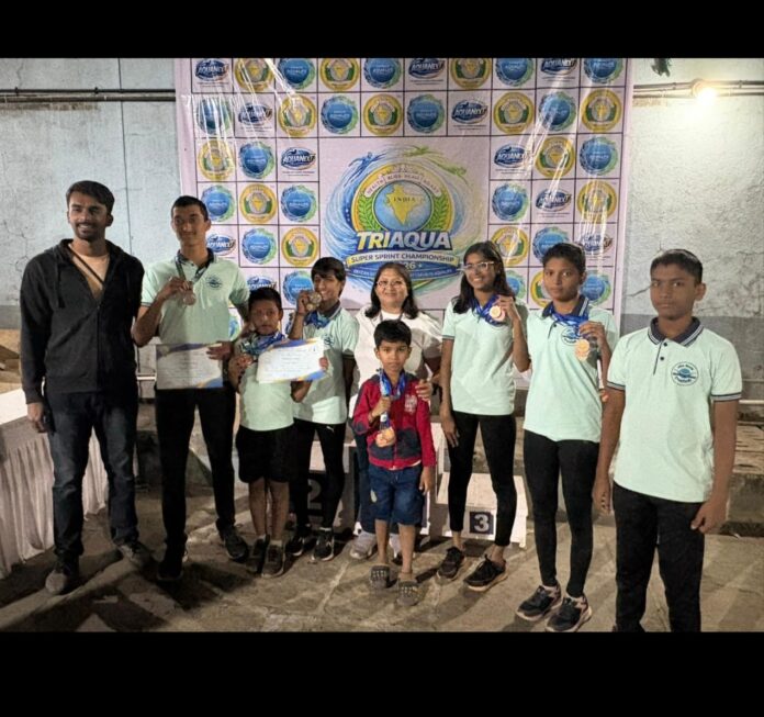 रत्नागिरी | प्रतिनिधी : पुणे येथे ७ आणि ८ फेब्रुवारी २०२६ या कालावधीत संपन्न झालेल्या ‘ट्रायक्वा राज्यस्तरीय जलतरण चॅम्पियनशिप’ मध्ये रत्नागिरीच्या ‘महेश मिलके स्विमिंग ग्रुप’ च्या खेळाडूंनी ऐतिहासिक कामगिरी केली आहे. या स्पर्धेत रत्नागिरीच्या ५ खेळाडूंनी अव्वल ३ क्रमांकांमध्ये स्थान पटकावत पदकांची कमाई केली, तर इतर खेळाडूंनी ‘टॉप ८’ मध्ये स्थान मिळवून सर्वांचे लक्ष वेधून घेतले.