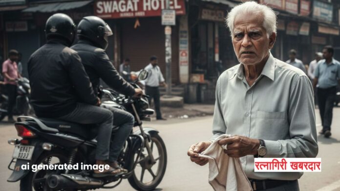 मिळालेल्या माहितीनुसार, फिर्यादी शांताराम दौलतराव साळवी (वय ८०, रा. गगनगिरी सोसायटी, मार्कंडी, चिपळूण) हे रविवारी, १५ फेब्रुवारी २०२६ रोजी सकाळी ११:३८ वाजण्याच्या सुमारास चिपळूण एसटी डेपोच्या बाजूला असलेल्या स्वागत हॉटेलसमोरील रस्त्यावरून जात होते. यावेळी पाठीमागून मोटारसायकलवरून दोन अज्ञात इसम तिथे आले.