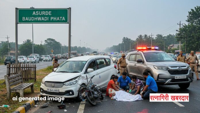 मिळालेल्या माहितीनुसार, १९ फेब्रुवारी २०२६ रोजी सकाळी ९:१५ च्या सुमारास आरोपी गिरीश चंद्रकांत गावडे (रा. माहीम, मुंबई) हा आपली एर्टिगा गाडी (MH-06-CL-0355) घेऊन मुंबईकडून गोव्याच्या दिशेने जात होता. चिपळूण तालुक्यातील असुर्डे बौद्धवाडी फाट्याजवळ आला असता, चालकाचे गाडीवरील नियंत्रण सुटले.