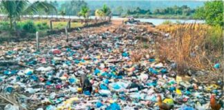 सोमेश्वरमधील काजळी नदीकिनारी प्लास्टिकचा खच