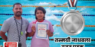 राज्यस्तरीय शालेय जलतरण स्पर्धेत डेरवणच्या तन्मयी जाधवला रजत पदक