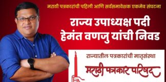 मराठी पत्रकार परिषदेच्या राज्य उपाध्यक्ष पदी हेमंत वणजु यांची निवड