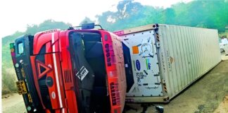 वेरळ घाटात कंटेनर कलंडल्याने 3 तास वाहतूक ठप्प