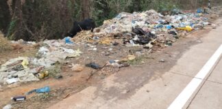 खेड-भरणे मार्गावरील बदामी नाल्या जवळ कचऱ्याचे ढीग