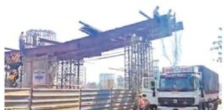 चिपळुणात उड्डाणपुलाची जाळी अडकली ट्रकमध्ये