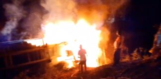 लांजा : वाकेड घाटात कोसळलेला कंटेनर आगीत जळून खाक; दोघेजण गंभीर