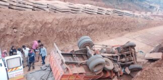 बावनदी घाट पुलाजवळ ट्रक खड्डयात कोसळून तिघे गंभीर