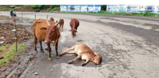 Sangameshwar : महामार्गावर वाहनाच्या धडकेत वासराचा मृत्यू