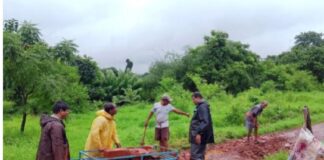 संगमेश्वर : कोसुंब ग्रामस्थांनी भरले रस्त्यावरील खड्डे