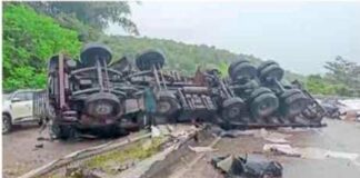 कशेडी घाटात मालवाहतूक ट्रक उलटून चालक जखमी