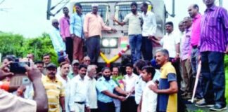 राजापूर रोड स्थानकात नेत्रावती एक्स्प्रेसचे जल्लोषात स्वागत