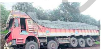 हातखंबा-गुरववाडी येथे ट्रक कलंडला